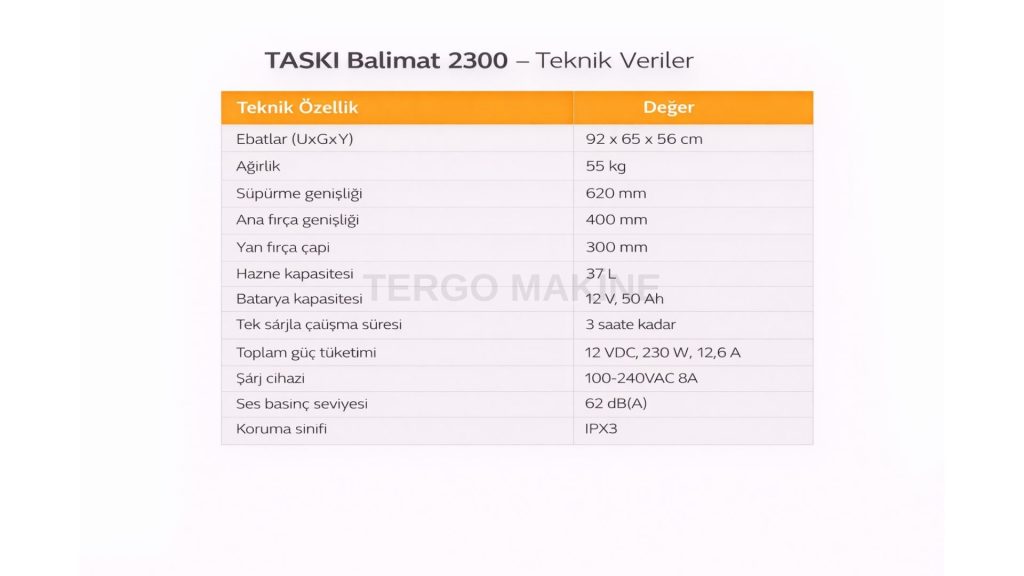Ergonomik tutma kolu ve kullanıcı dostu tasarımı, uzun süreli kullanımlarda operatör konforunu artırır. Dayanıklı gövde yapısı ve düşük bakım ihtiyacı sayesinde Balimat 2300, işletmeler için uzun ömürlü ve ekonomik bir süpürme makinesi çözümüdür.